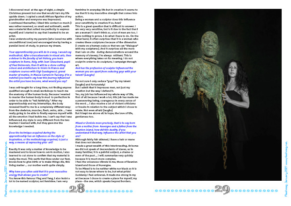 This is a great question that is difficult to answer. I am very very sensitive, but is it due to the fact that I am a woman? I don't think so, a lot of men are too. I have nothing to prove. I do what I have to do. On the other hand, it often surprises that it is a woman who creates these sculptures because of the dimension (I create on a human scale so that we can "dialogue" with my sculptures). And it surprises all the more that I am on site during demonstrations around the memory of slavery; I’m always militant. This is where everything takes on its meaning. I do not sculpt in order to do sculpture, I campaign through art.
