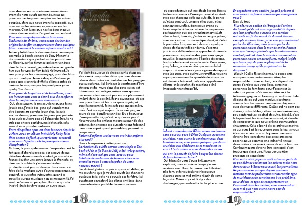j’ai écrit beaucoup de choses sur la diaspora africaine à propos des défis que nous devons relever dans notre vie quotidienne, les préjugés dus au racisme, j’ai écrit sur le sentiment d’être africain et de vivre dans des pays où on est toléré mais non intégré, même ceux qui sont nés en occident ne sont pas encore pleinement intégré dans la société. Ils ne savent pas où est leur place. Ce sont les principaux sujets, et aussi la maternité. Je ne suis pas encore mère, mais c’est un sujet majeur. Je ne sais pas, au cours de ces dernières années, il y a beaucoup d'irresponsabilité, qu’est ce qui ne va pas ? Nous voyons les enfants mettre au monde des enfants, donc toutes ces questions ont foisonné dans mon esprit quand je méditais, passant du temps seule ...