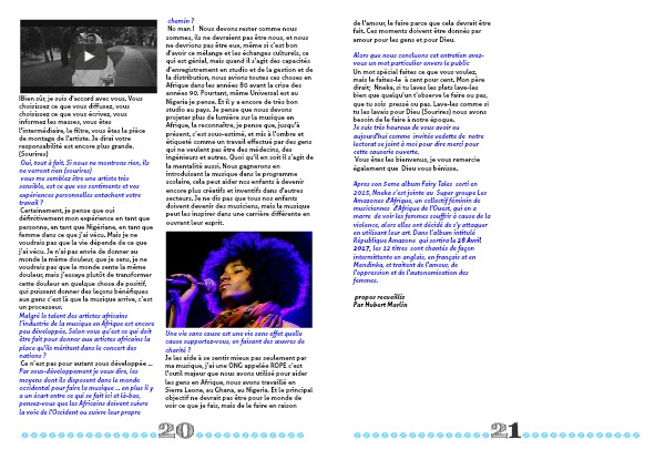 Certainement, je pense que oui définitivement mon expérience en tant que personne, en tant que Nigériane, en tant que femme dans ce que j’ai vécu. Mais je ne voudrais pas que la vie dépende de ce que j’ai vécu. Je n’ai pas envie de donner au monde la même douleur, que je sens, je ne voudrais pas que le monde sente la même douleur, mais j’essaye plutôt de transformer cette douleur en quelque chose de positif, qui puissent donner des leçons bénéfiques aux gens c’est là que la musique arrive, c’est un processeur.