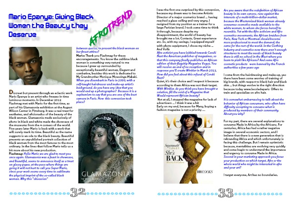 Mario: Thank you Flashmag for these encouragements. You know the sublime black woman is something very natural to me because I grew up surrounded by exceptionally beautiful women, Elegant and combative, besides this work is dedicated to My Grandmother Monique Moussinga Makaki.
