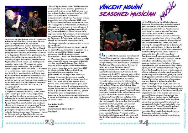 Vincent Nguini vivra à jamais dans la mémoire qu’inspire son œuvre musicale généreuse, il aura contribué à pas moins de 82 albums avec des artistes de divers horizons jusqu’en 1987 année où il décida de se consacrer uniquement à l’orchestre de Paul Simon et à ses productions solos. Cependant en 2013 alors qu’il est au pays natal pour présenter son opus The rough guide to African Disco, un Medley de classique noir américain à la sauce africaine, il rompra cette règle, et fera la promesse à Lady de Ponce une égérie du Bikutsi, rythme de la région du centre du Cameroun, de travailler sur son nouvel opus. Pendant les 2 mois passés au Cameroun, il s’y attèlera ; mais son agenda chargé et la maternité impromptue de la chanteuse en décideront autrement de la sortie de cet album.