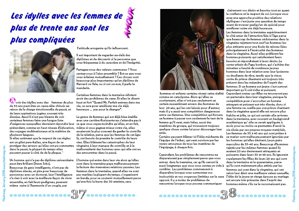 Les femmes dans la trentaine expérimentent le côté amer de l'attraction liée à l'âge parce que beaucoup de femmes séduisantes dans la vingtaine rejettent tout sauf les hommes les plus attirants pour une foule de raisons liées principalement à l'insécurité des hommes dans la vingtaine. Aussi elles préfèrent les hommes puissants qui satisferaient leurs besoins et répondraient à leurs désirs. Le conte urbain du Papy bonbon, qui s’achète des minettes a heurté de nombreux jeunes hommes dans leur relation avec leur lycéenne ou étudiante de rêve, tandis que le vieux conte du prince charmant est toujours très présent dans les méandres de l’esprit des femmes. Si un homme est jeune c’est surtout important qu’il soit riche et puissant. Cependant toutes ces filles ne trouveront pas un partenaire dans leur vingtaine, puisque la compétition pour s’accrocher un homme attrayant et puissant est très élevée, donc si une femme ne cueille pas son prince charmant dans la vingtaine quand elle est encore plus fraîche et jolie, ce qui est certain elle arrivera dans la trentaine, avec souvent un background académique qu’ elle se serait appliquée à avoir, pour au moins se permettre d’avoir la vie rêvée par ses propres moyens matériels.