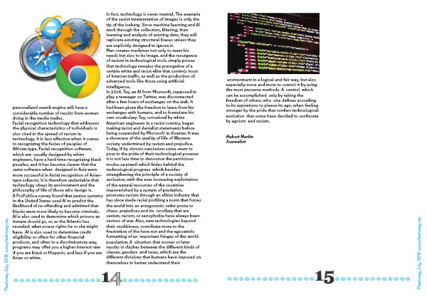 Man creates machines not only to meet his needs but also to its image, and the resurgence of racism in technological tools simply proves that technology remains the prerogative of a certain white and racist elite that controls most of Internet traffic, as well as the production of advanced tools like those using artificial intelligence.