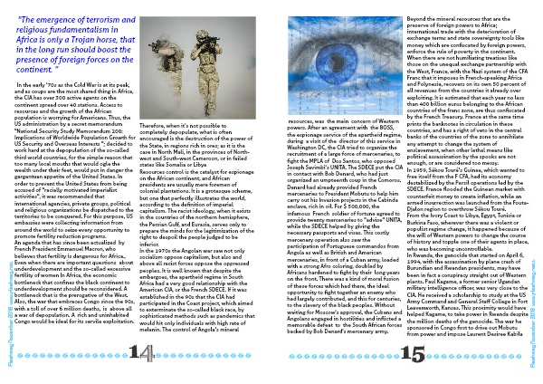 In Rwanda, the genocide that started on April 6, 1994, with the assassination by plane crash of Burundian and Rwandan presidents, may have been in fact a conspiracy straight out of Western plants. Paul Kagame, a former senior Ugandan military intelligence officer, was very close to the CIA. He received a scholarship to study at the US Army Command and General Staff College in Fort Leavenworth, Kansas. This proximity would have helped Kagame, to take power in Rwanda despite the million deaths of the genocide. The war he sponsored in Congo first to drive out Mobutu from power and impose Laurent Desiree Kabila