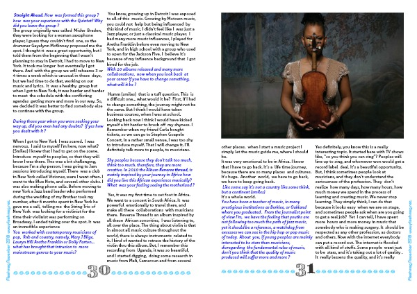 Yes, it was my first time to set foot in Africa. We went to a concert in South Africa. It was powerful emotionally to travel there, and make all these collaborations with musicians there. Reverse Thread is an album inspired by all these African sonorities, I was listening to, all over the place. The thing about violin is that in almost all music culture throughout the world, there is always instruments related to it. I kind of wanted to retrace the history of the violin thru this album. But, I remember this recording from Uganda, it was so beautiful, and I started digging, doing some research in music from Mali, Cameroun and from several
