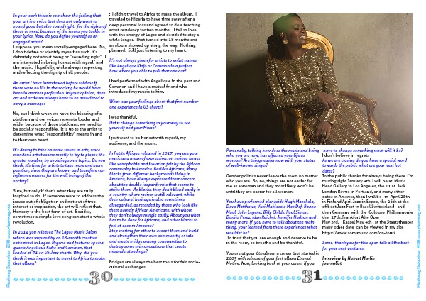 To the public thanks for always being there. I’m touring right January 9th I will be at Music Head Gallery in Los Angeles, the 11 at Jack London Revue in Portland, and many other dates in America, then I will be in April 25th in Finland April Jazz in Espoo, the 26th at the offbeat Jazz Fest in Basel Switzerland and then Germany with the Cologne Philharmonie ther 27th, Frankfurt Alte Oper